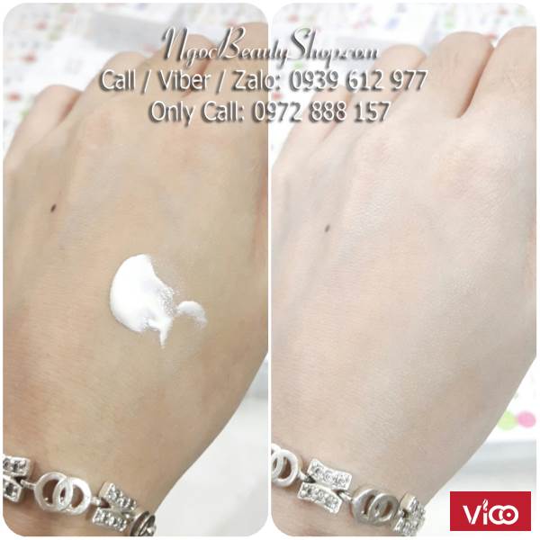 - Kem mềm mịn, thẩm thấu cực nhanh, kem chứa các hạt chống mồ hôi nên không gây bết rít, không lộ vân kem, không trôi do rửa nước, độ phủ rất tốt, giúp làm đều màu da, che khuyết điểm, chống nắng cao (SPF 50) giúp chống lại tia UV khi đi nắng.