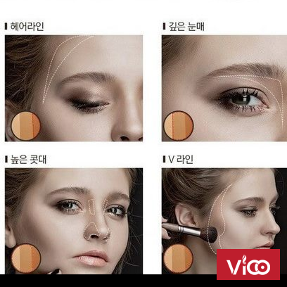 Sử dụng hai loại phấn trắng và nâu tương phản nhau để tạo khối cho khuôn mặt: