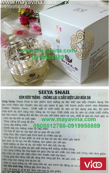 SEEYA ỐC SÊN - SEEYA SNAIL ( Kem Siêu Trắng - Chống Lại 12 Dấu Hiệu Lão Hóa Da) là sản phẩm kem dưỡng da đặc biệt cao cấp chuyên dụng theo liệu trình chăm sóc chuyên sâu của các salon và spa được chiết xuất từ chất nhầy của Ốc Sên có tác dụng xoa dịu tái sinh chữa lành da làm da căn mịn giúp dưỡng ẩm làm mờ các vết nám thâm và sẹo do mụn gây ra se khít lỗ chân lông, làn da bạn sẽ trắng đẹp tự nhiên trong thời gian ngắn nhất