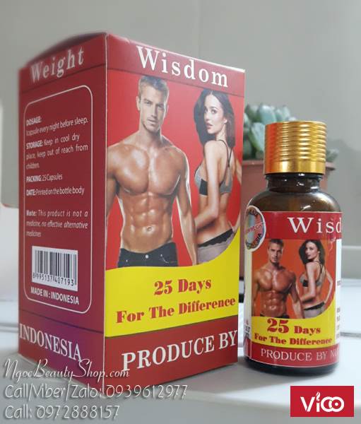 Vitamin tăng cân Wisdom Weight - Indonesia với các thành phần là vitamin K 0,5mg, vitamin C là 0,5mg, protein 350mg, liquid Soyblecethin là 45mg, giúp cơ thể bạn tăng cân một cách an toàn thông qua 4 tác động là thanh lọc đào thải các chất độc tố tích tụ trong cơ thể, tăng cường khả năng hấp thu thức ăn giúp cải thiện khả năng trao đổi chất, mang lại cảm giác ăn ngon miệng, tạo giấc ngủ sâu.