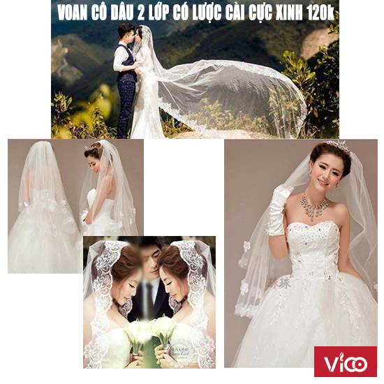 VOAN CÔ DÂU 2 LỚP CÓ LƯỢC CÀI CỰC XINH