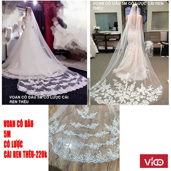 VOAN CÔ DÂU 5M CÓ LƯỢC CÀI REN THÊU