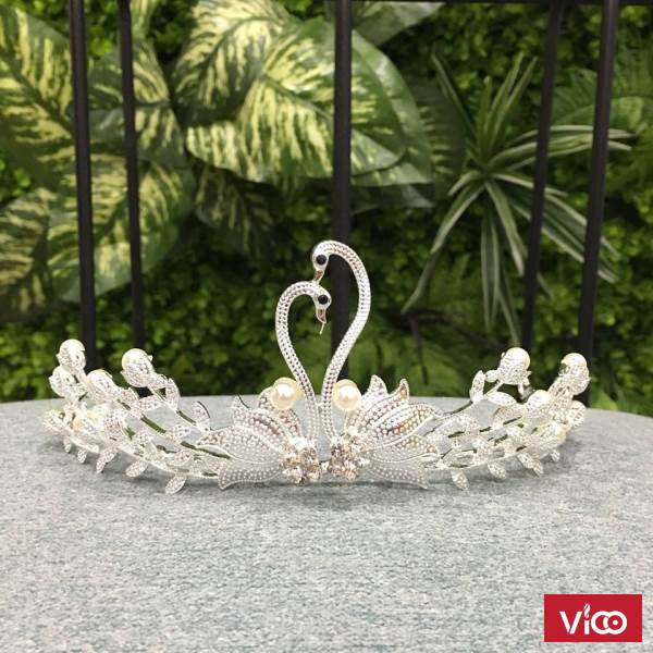 các cô dâu có thể chọn kiểu vương miện cô dâu được kết từ hạt ngọc trai hoặc các mẫu vương miện có màu ánh kim để vừa giúp cô dâu "ăn gian" chiều cao, vừa làm khuôn mặt cô dâu trông sáng hơn.