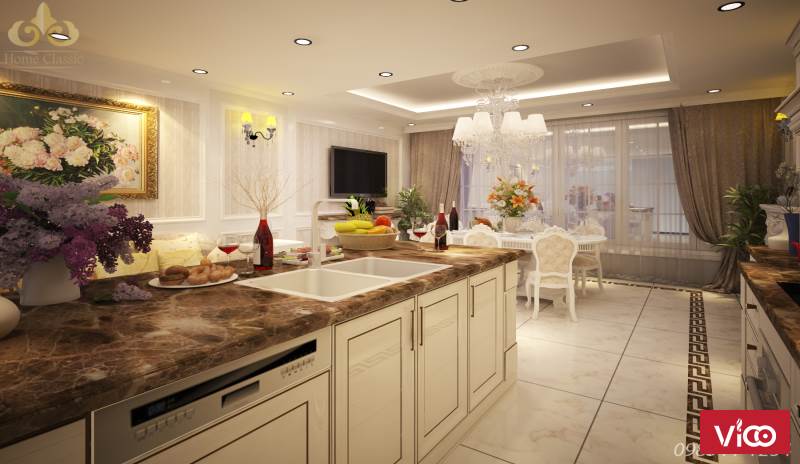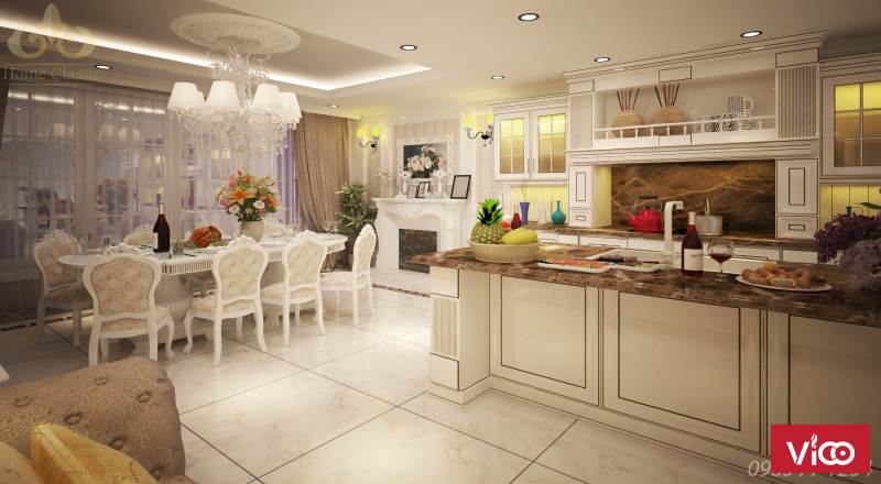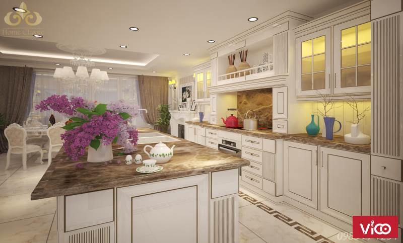 Với đội ngũ thiết kế chuyên nghiệp, Homeclassic có thể tư vấn cho khách hàng một mẫu thiết kế phòng bếp tân cổ điển đẹp nhất, hợp phong thủy và có công năng sử dụng cao nhất.