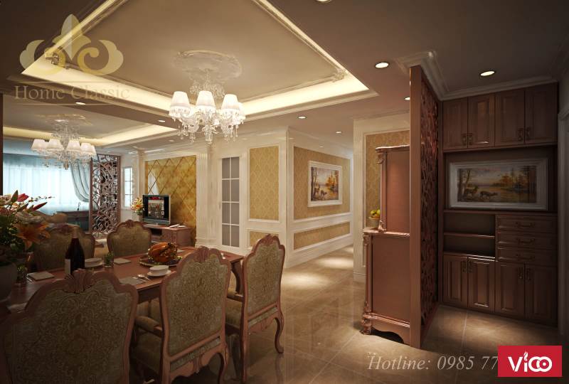 Thiết kế nội thất phòng ăn – bếp ăn tân cổ điển