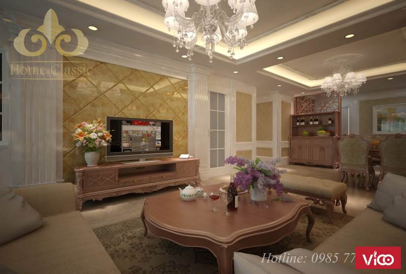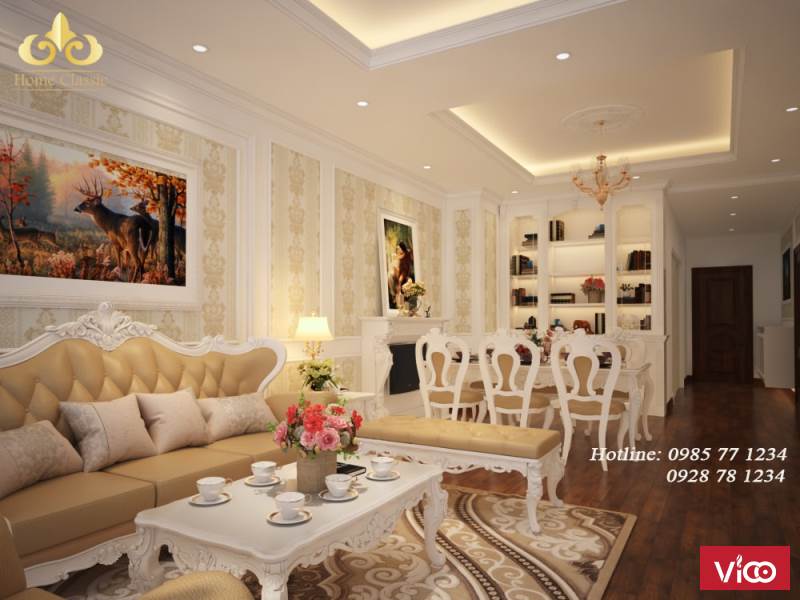Bước chân vào một căn nhà, không gian đầu tiên mà người xem cảm nhận được chính là không gian phòng khách. Vì vậy, thiết kế nội thất phòng khách cần phải được trau chuốt, tỉ mỉ và toát lên được phong cách chính của căn nhà, nhằm tạo ấn tượng mạnh mẽ nhất cho khách thăm quan. Để có thể cảm nhận rõ hơn về nét đẹp trong phong cách thiết kế nội thất tân cổ điển, Homeclassic xin mời các bạn chiêm ngưỡng những không gian nội thất phòng khách tân cổ điển mà chúng tôi đã thiết kê và thi công :
