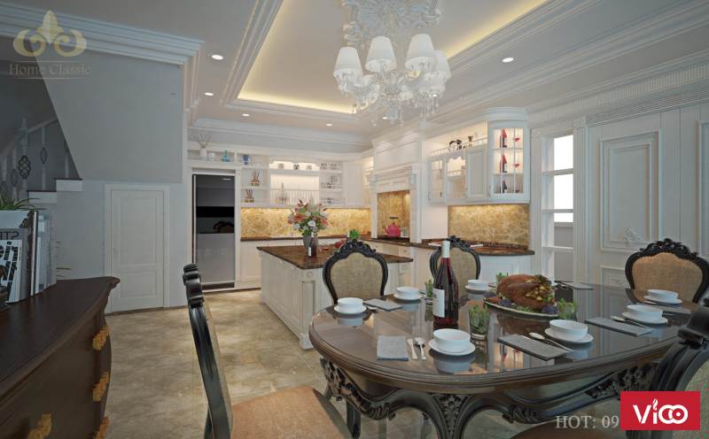 Không gian bếp ăn tân cổ điển sang trọng tiện nghi và vô cùng đẳng cấp.
