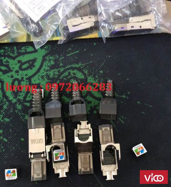 Đầu bấm hạt mạng Cat6A STP không dùng Tool, chống nhiễu Shielded, có chụp
