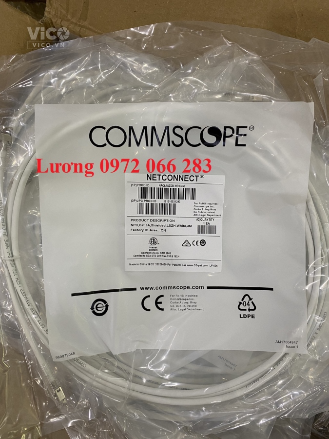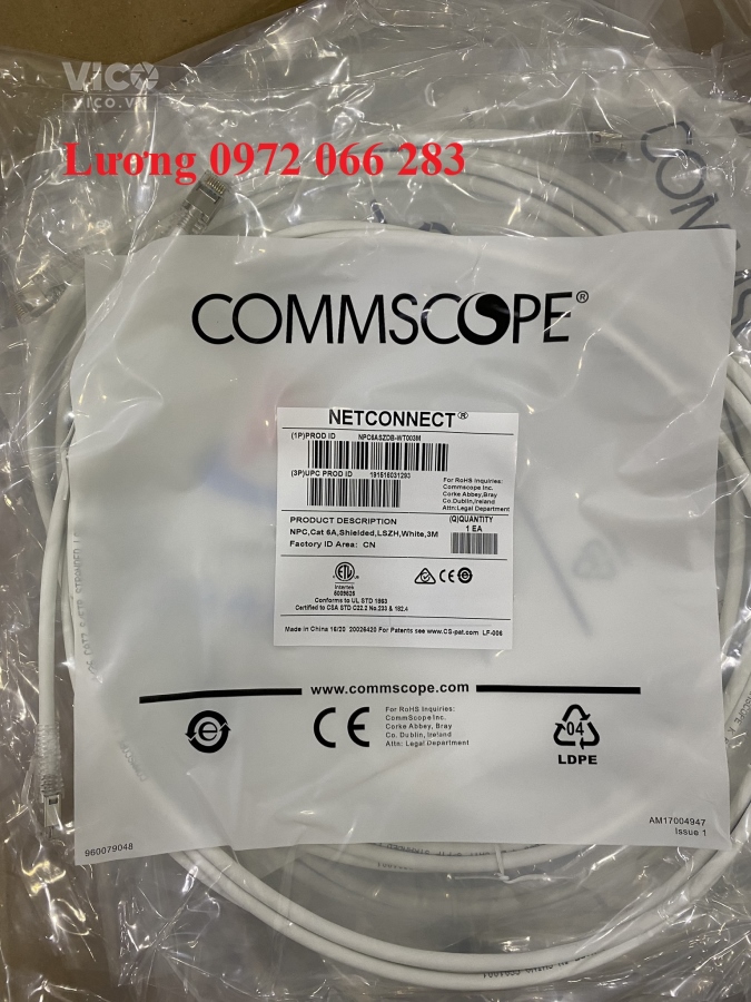 Dây Pacth Cord COMMSCOPE Cat 6A chống nhiễu 3M NPC6ASZDB-WT003M