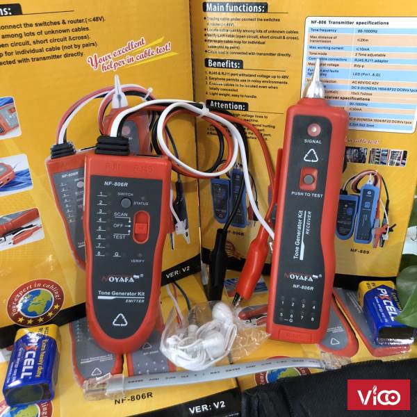 Máy dò dây, test cáp NF806R đa chức năng tìm kiếm dây cáp mạng cat5, cat6 tích hợp với test thông dây cáp mạng. Máy dò dây mạng NF806R tăng cường phiên bản của dòng kiểm tra kỹ thuật số âm thanh. Máy Test dây mạng ,dò dây mạng, thoại, dây dò dây điện âm tường Thiết bị test cáp Dò dây mạng NF806R ( red) được thiết kế chuyên dùng cho bảo trì mạng