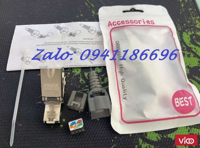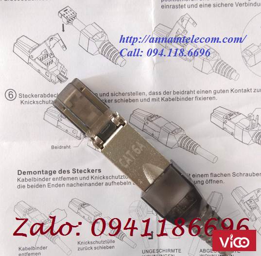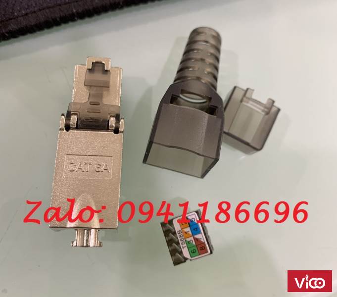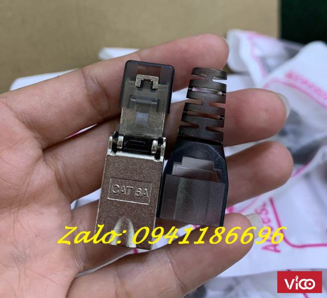 Đầu bấm hạt mạng Cat6A STP không dùng Tool, chống nhiễu Shielded, có chụp