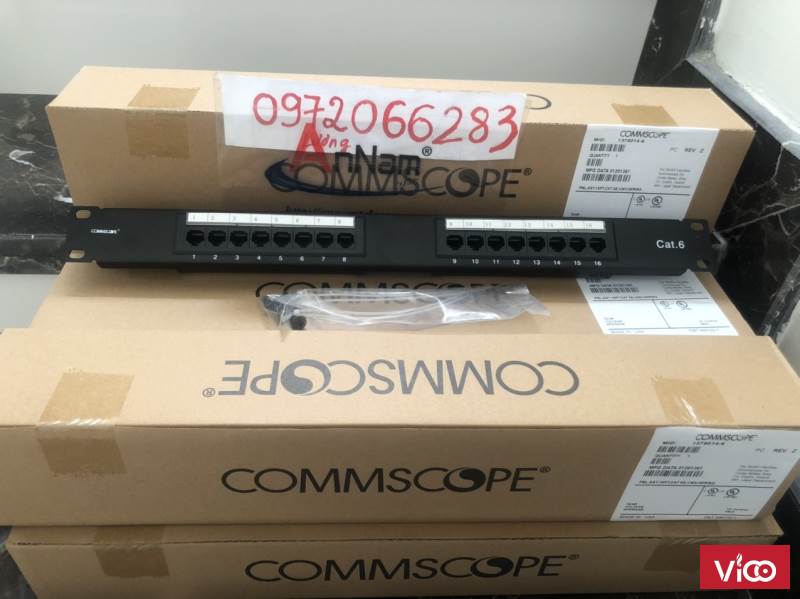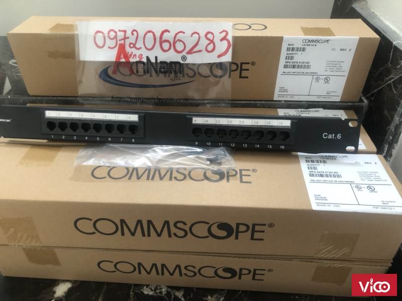 - COMMSCOPE Cat 6 Patch Panels được thiết kế với 6 cổng trên 1 modules, nó cho phép dán nhãn 9mm và 12mm hoặc là các biểu tượng màu. Những module 6 cổng RJ45 này cũng có thể được thay thế khi cần thiết.