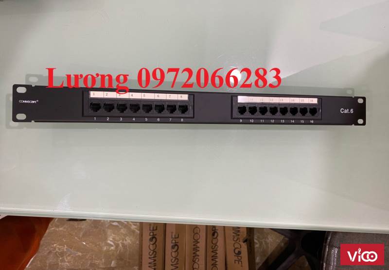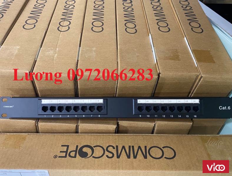 - COMMSCOPE Cat 6 Patch Panels được thiết kế với 6 cổng trên 1 modules, nó cho phép dán nhãn 9mm và 12mm hoặc là các biểu tượng màu. Những module 6 cổng RJ45 này cũng có thể được thay thế khi cần thiết.