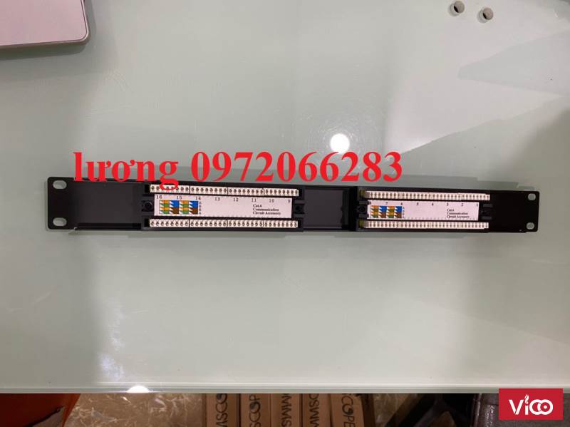 - Cat 6 patch panel 16-port cao 1U với mã màu T568A hoặc T658B đầu RJ45 8-position.