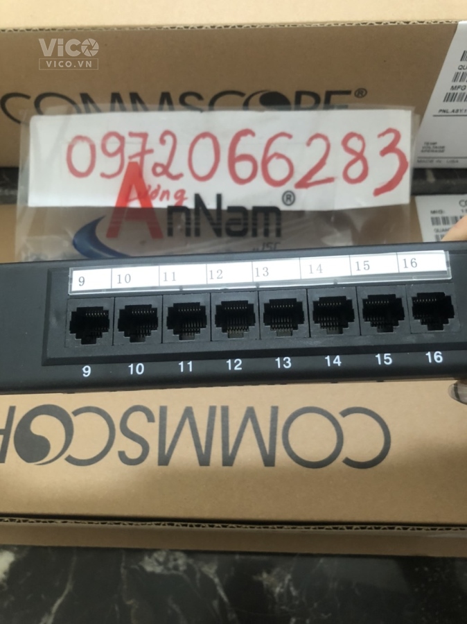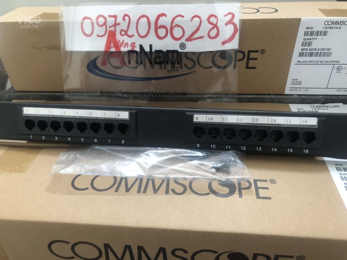 - COMMSCOPE Cat 6 Patch Panels được thiết kế với 6 cổng trên 1 modules, nó cho phép dán nhãn 9mm và 12mm hoặc là các biểu tượng màu. Những module 6 cổng RJ45 này cũng có thể được thay thế khi cần thiết.