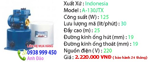 7- Máy bơm nước tự động tăng áp PANASONIC A -130JTX (125W)