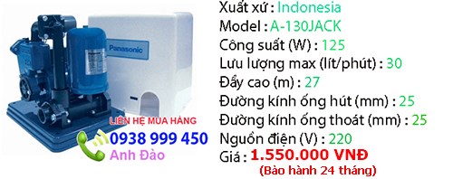 6- Máy bơm nước tự động tăng áp PANASONIC A -130JACK (125W)