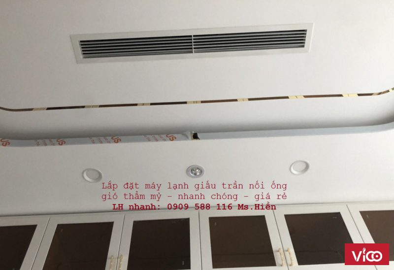 Dòng máy lạnh được lắp giấu bên trong trần nhà, la phông, thạch cao giúp không gian bên ngoài gọn gàng, không làm ảnh hưởng đến việc bố trí các nội thất khác, thẩm mỹ cao và sang trọng. HOẶC dàn lạnh được lắp lộ ra bên ngoài, người thợ kỹ thuật sẽ luồng ống gió từ dàn lạnh đi vào bên trong không gian cần làm lạnh. Trên trần sẽ có một khe gió thổi và một khe gió hồi. Bạn cũng có thể yêu cầu đơn vị lắp đặt thiết kế cho mình miệng gió thổi phù hợp với nhu cầu và sở thích.