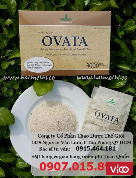 - Thảo dược OVATA chứa đến 70% chất sơ hòa tan và 30% chất nhầy, khi vào hệ thống tiêu hóa sẽ trương nở, giữ nước, làm tăng thể tích và mềm phân, tạo nhuận trường khối kích thích nhu động ruột, giúp đẩy chất thải nhanh, sạch và dễ dàng.